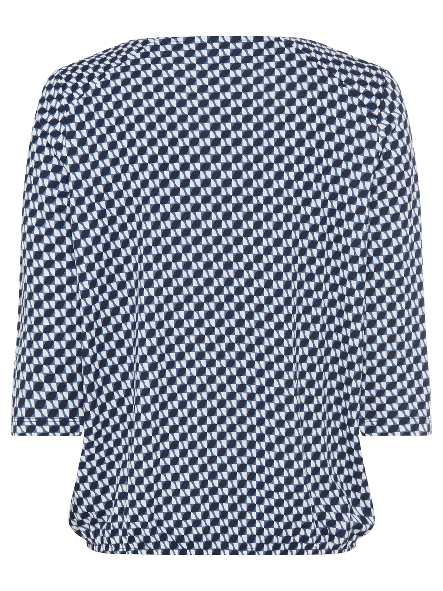 Dieses Shirt ist etwas weiter geschnitten und zeigt einen grafischen Allover-Print. Der geschlitzte Rundhalsausschnitt ist mit einem kleinen, dekorativen Knopf mit Schlaufe verschlossen. Die 3/4-Ärmel sowie der untere Abschluss sind mit einem elastischen Band ausgestattet. Aus einer angenehmen Baumwollmischung gefertigt, liegt es zudem angenehm leicht auf der Haut. Bonus: Die weichen und glatten TENCEL™ Lyocellfasern die in diesem Style verarbeitet sind, werden in einem geschlossenen Produktionsprozess hergestellt, bei dem Zellstoff mit hoher Ressourceneffizienz und geringer Umweltbelastung in Zellulosefasern umgewandelt wird. TENCEL™ ist eine Marke der Lenzing AG. Länge ca. 60cm.