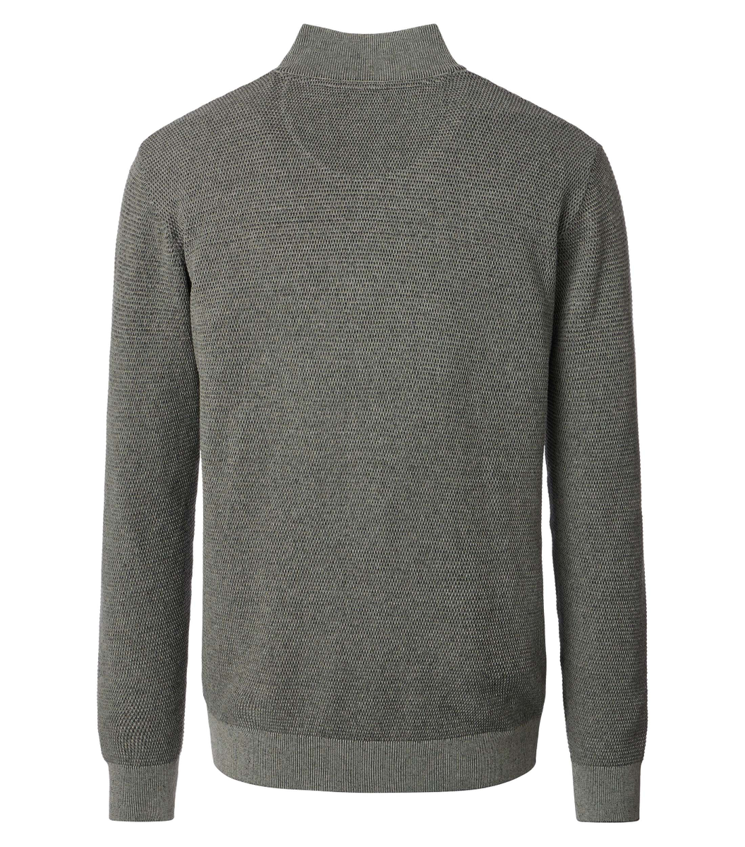 Dieser Strick-Troyer überzeugt mit zeitloser Eleganz und angenehmer Wärme. Die feine Strickstruktur sorgt für eine edle Optik, während der hohe Kragen mit Reißverschluss für einen modernen Touch sorgt. Ob über einem Hemd oder solo getragen – dieser Troyer ist ideal für stilbewusste Looks an kühleren Tagen.