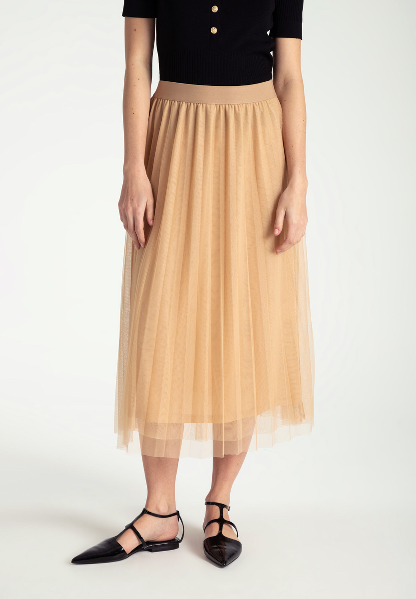 Der feminine Tüllrock von MORE & MORE mit Plisséefalten und Gummibund kann mit lässigem Pullover genauso gut gestylt werden wie mit eleganter Satinbluse oder sportivem Shirt.