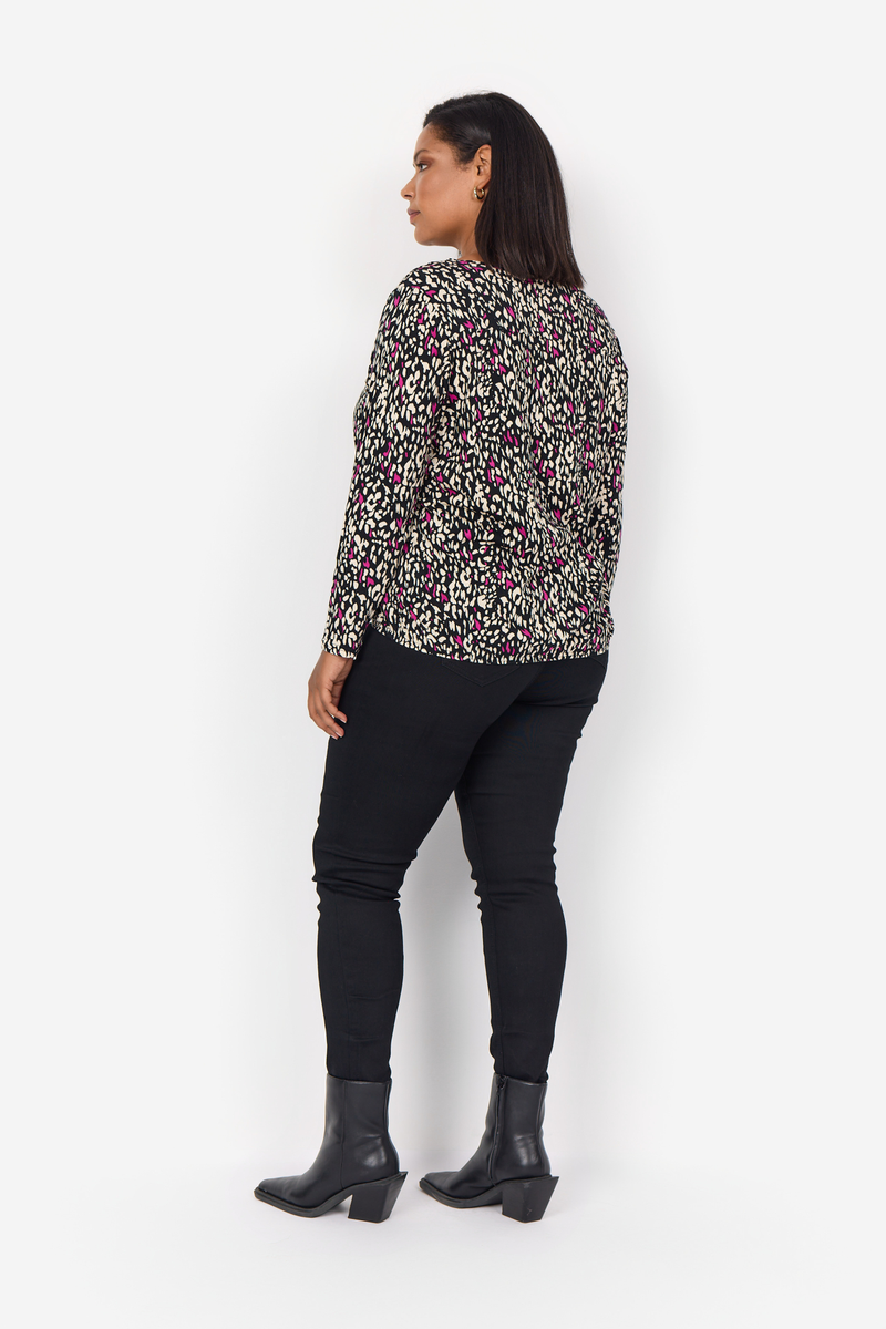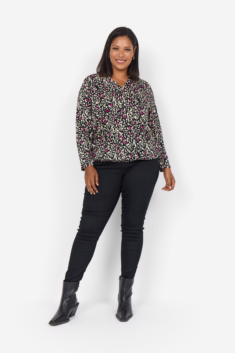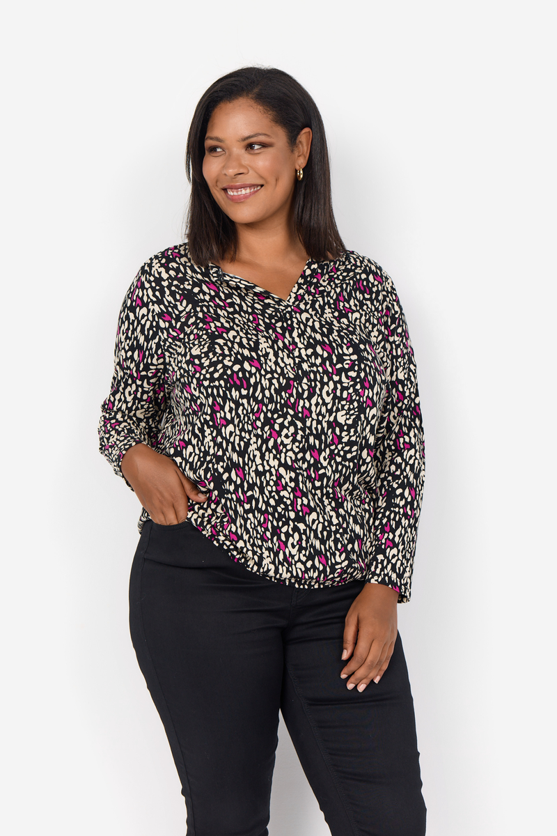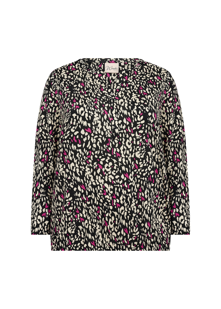 WA-Kayla 2 ist eine farbenfrohe Bluse aus einer schönen Mischung aus Bio-Baumwolle und Viskose. Die Bluse hat einen schmeichelhaften Rundhalsausschnitt, eine Knopfleiste, 7/8-Ärmel, eine lockere Passform und einen lebendigen Druck. Kombinieren Sie sie mit einer Jeans und einem Blazer für einen schönen Alltagslook.