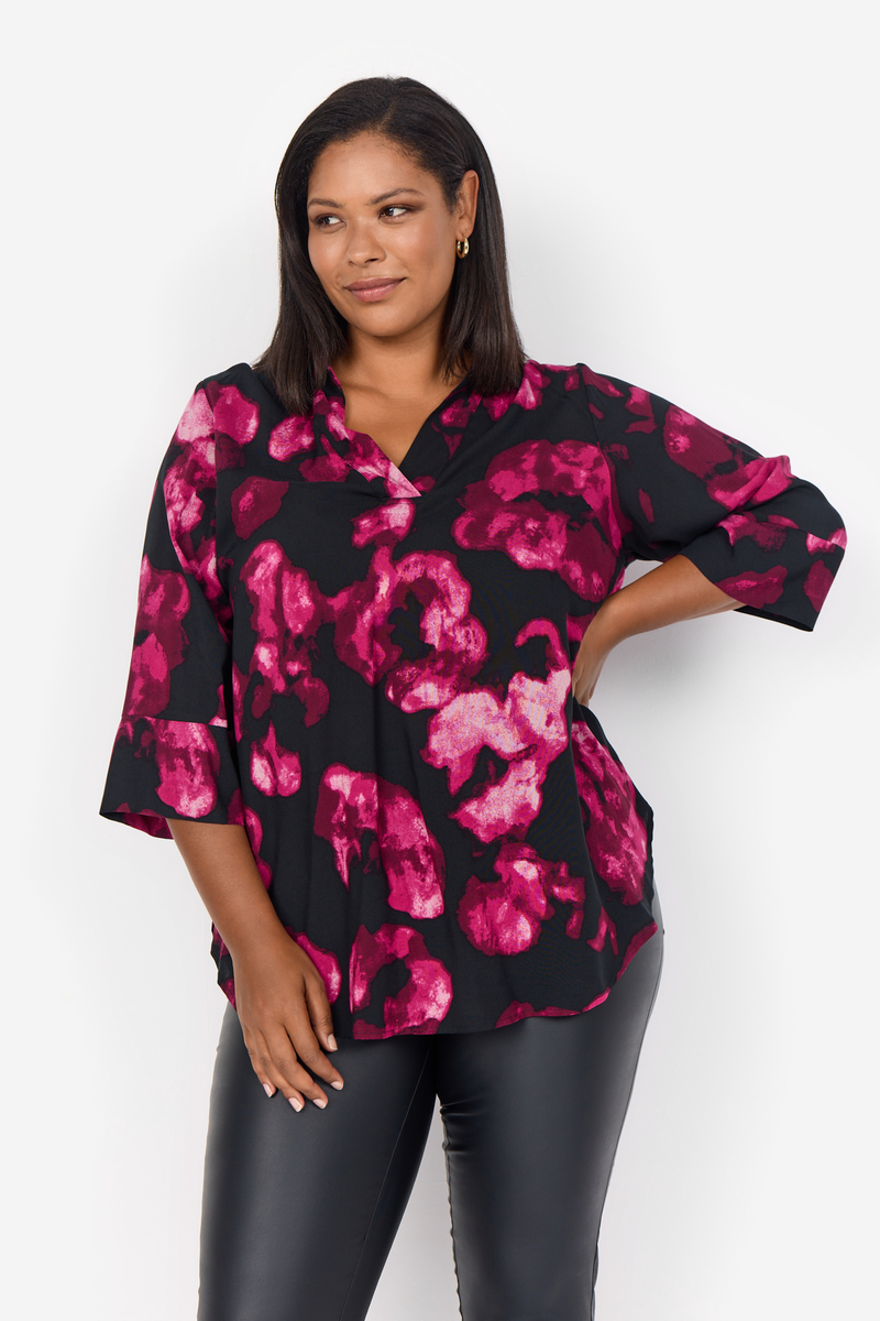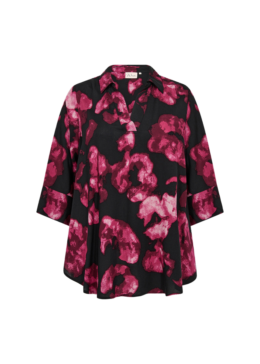 WA-Keisie 2 ist ein feminines Shirt aus 100% LENZING™ ECOVERO™ Viskose. Das Shirt hat einen klassischen Kragen, einen schmeichelhaften V-Ausschnitt, 7/8-Ärmel, eine lockere Passform und einen bunten Druck. Kombinieren Sie es mit einer Anzughose und Ballerinas für einen schönen Look.