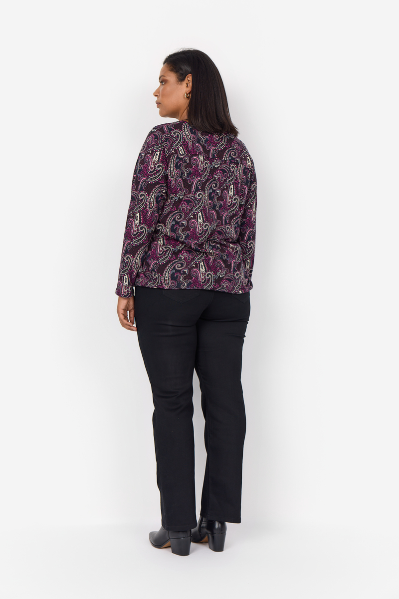 WA-Kenza 2 ist eine einzigartige Bluse aus einer schönen Mischung aus Bio-Baumwolle und Viskose. Die Bluse hat einen geteilten Ausschnitt, eine Knopfleiste, 7/8-Ärmel, eine lockere Passform und einen schönen Paisley-Druck. Kombinieren Sie sie mit einer Jeans und einer Strickjacke für einen schönen Alltagslook.