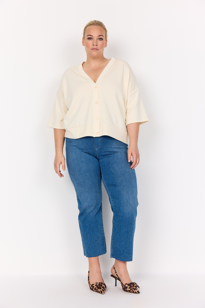 WA-SABINA 43 ist eine bequeme Strickjacke aus einer weichen Mischung aus 48% Modal, 48% Polyester und 4%. Das Modell hat einen V-Ausschnitt, 3/4-Ärmel, eine Knopfleiste und ist in einer lockeren Silhouette geschnitten. Dieser Cardigan eignet sich für eine Vielzahl von Anlässen und kann zu verschiedenen Outfits getragen werden, ob über einem Kleid oder mit einer Hose und einem Top.