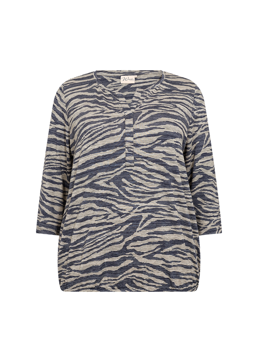 WA-SARINA 10 ist eine auffällige Bluse aus 52% Viskose, 44% Polyester, 4% Elasthan. Das Design zeichnet sich durch einen lockeren Schnitt, Dreiviertelärmel und einen dynamischen Zebradruck aus, der mit einem raffinierten V-Ausschnitt für einen Hauch von Eleganz sorgt. Kombinieren Sie es mit einer maßgeschneiderten Hose und Loafers für einen eleganten Look oder tragen Sie es mit einer Jeans und lässigen Flats für den Alltag.