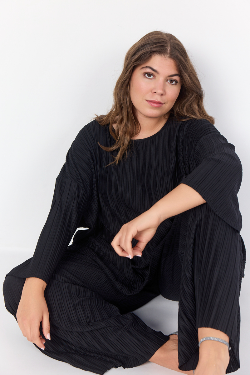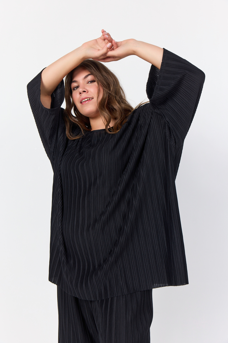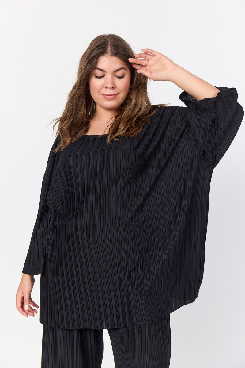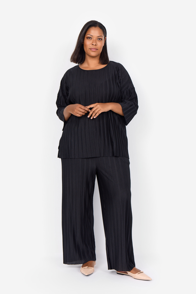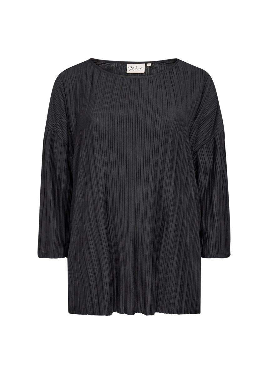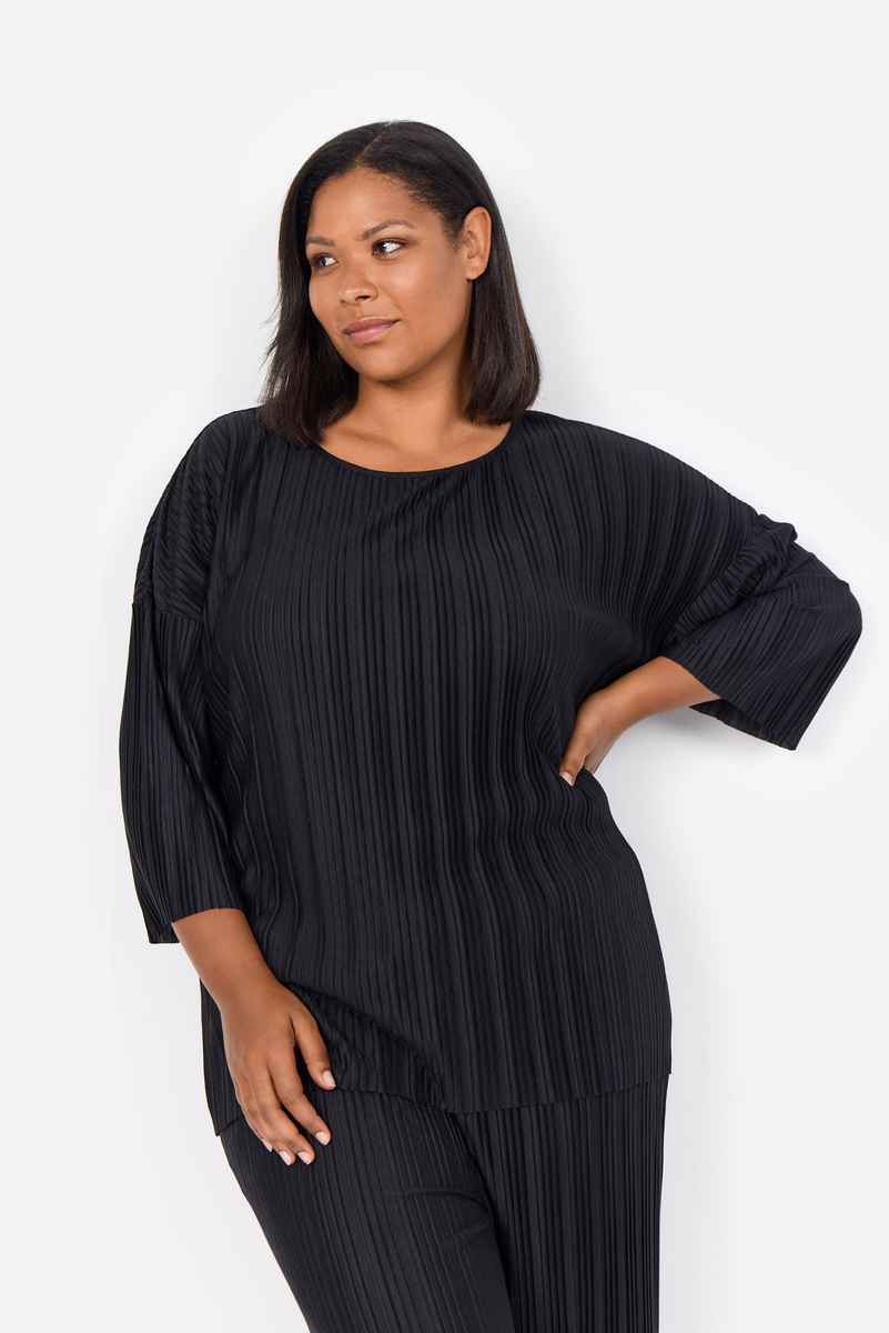 WA-Scarlet 1 ist eine elegante Bluse aus einer schönen Mischung aus recyceltem Polyester und Viskose. Die Bluse hat einen femininen Bootsausschnitt, 7/8-Ärmel, ein plissiertes Design und eine leichte Passform. Kombiniere diese schöne Bluse mit einer klassischen Hose und einem Paar Loafers für einen stilvollen Look.