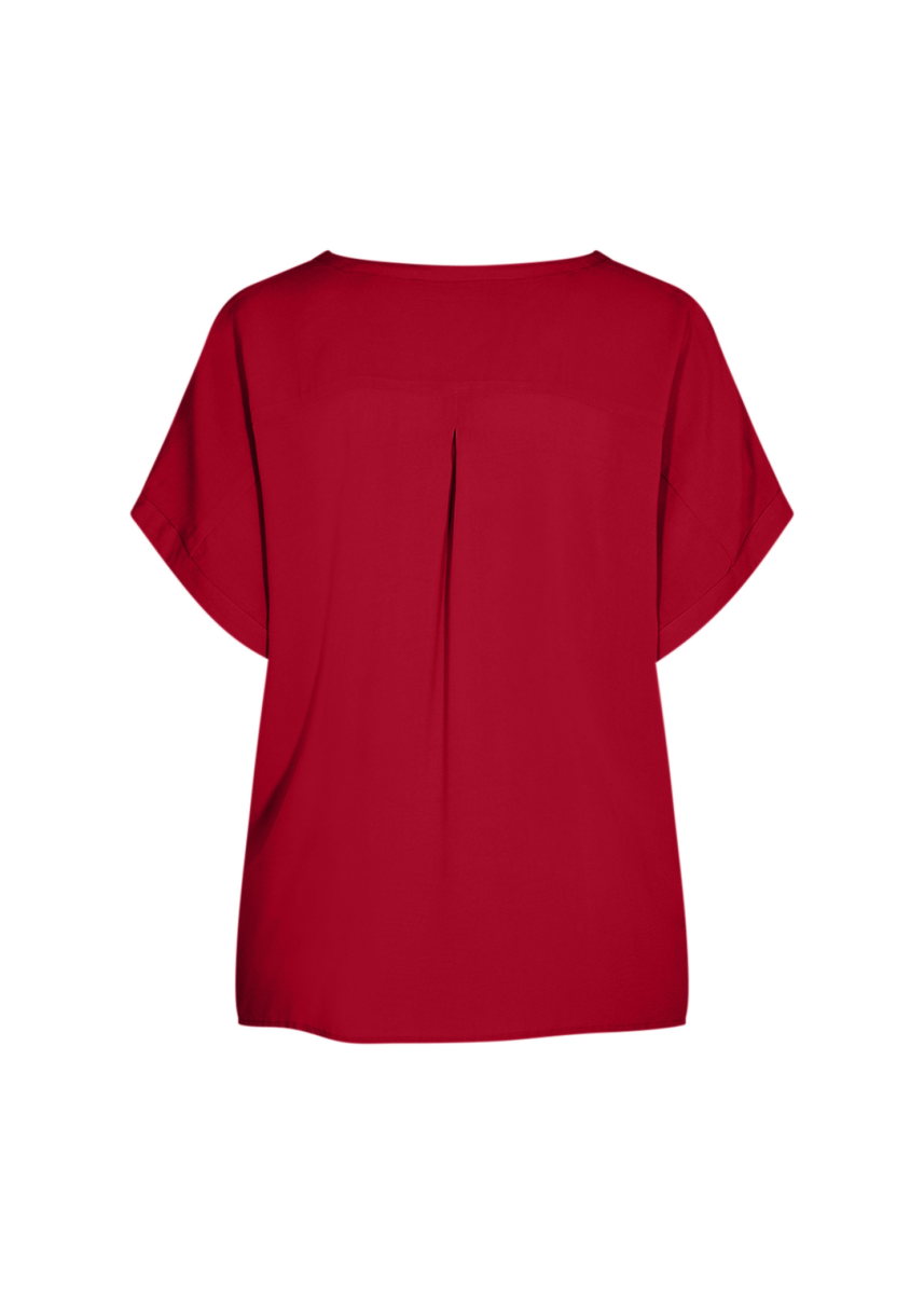WA-Sia 1 ist eine klassische Bluse aus 100% LENZING™ ECOVERO™ Viskose. Die Bluse hat einen geteilten Ausschnitt, eine Knopfleiste, kurze Ärmel, eine lockere Passform und ein schönes Schlagdetail am Rücken. Kombiniere diese feminine Bluse mit einer Hose und Sneakers für einen klassischen Alltagslook.