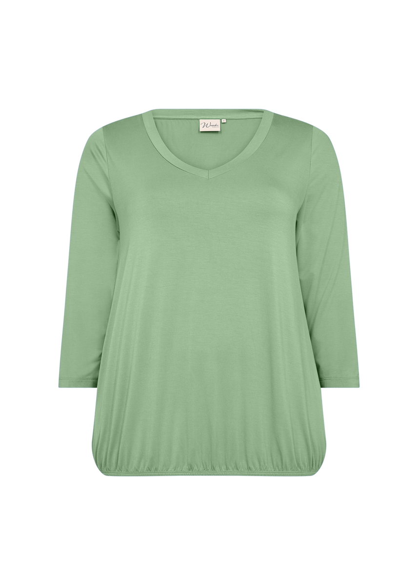 WA-Stella 13 ist eine schöne Bluse aus einer weichen Mischung aus Lyocell und Elastan. Die Bluse hat einen dezenten V-Ausschnitt, 7/8-Ärmel, einen Gummizug am Saum und eine schmeichelhafte Passform. Style diese schöne Bluse mit einer Jeans und einer Strickjacke für einen schönen Alltagslook.