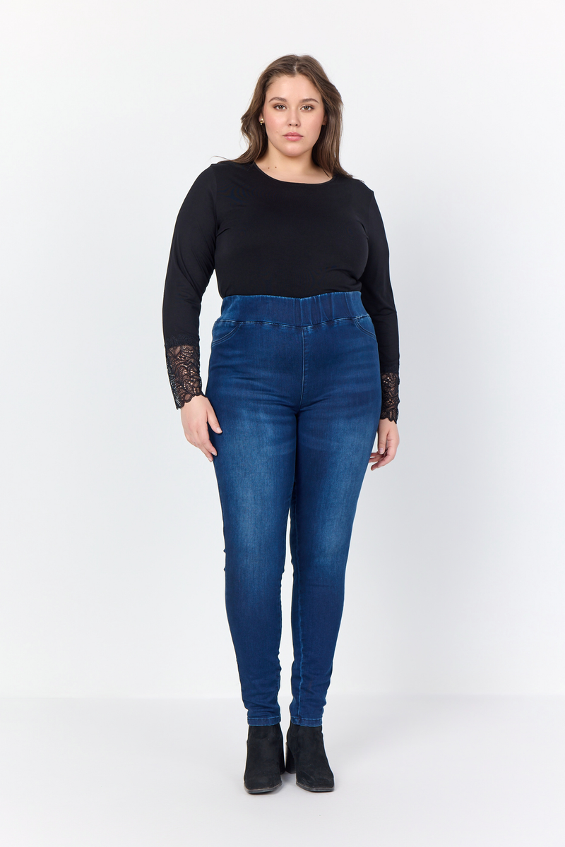 WA-Summer 2 ist eine schöne Jeans aus einer Mischung aus Baumwolle, Polyester und Elastan. Die Jeans hat eine hohe Taille, eine enge Passform, vier Taschen und einen elastischen Bund. Kombinieren Sie dieses Must-have mit einem Paar Westernstiefel und einem Strickpullover für einen schönen Alltagslook.