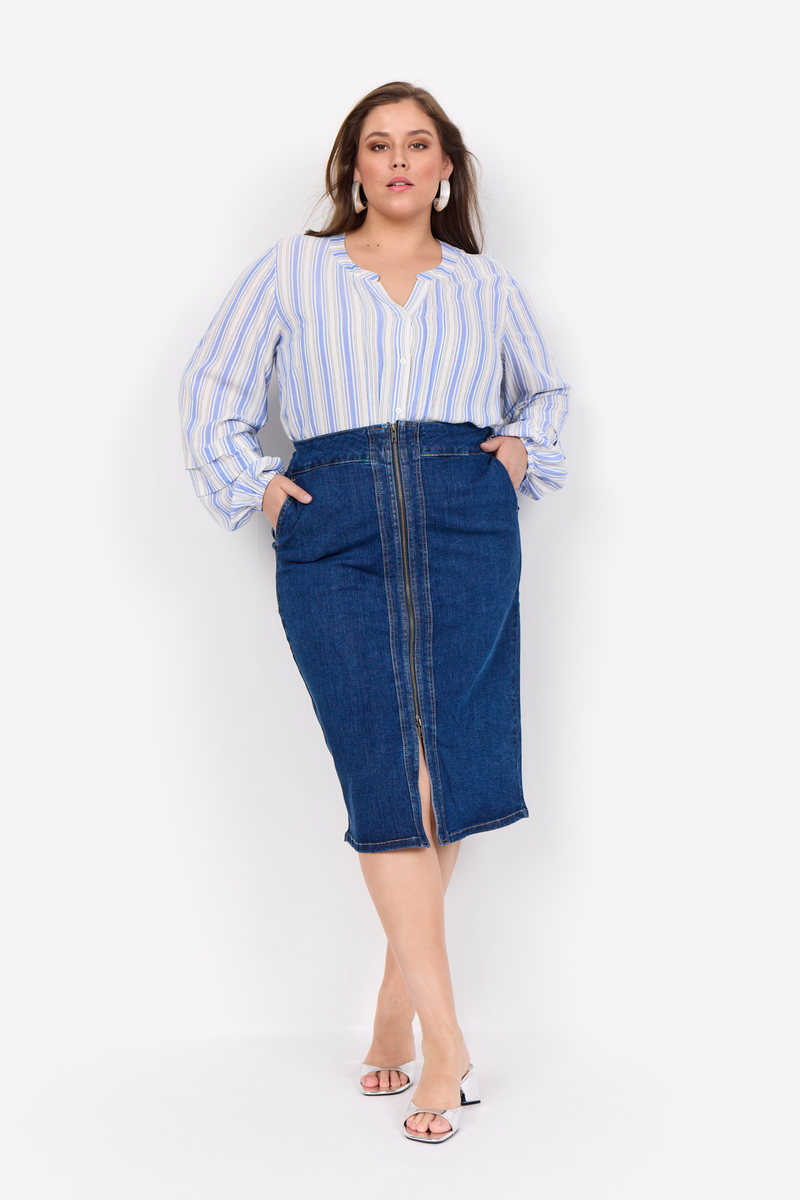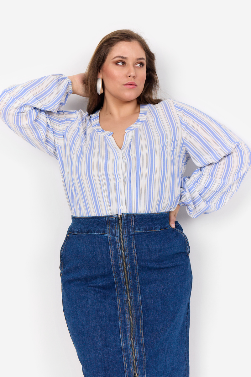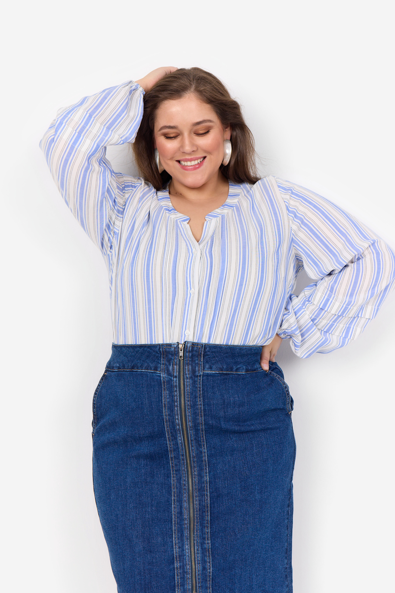 WA-VILMA 1 hebt das Shirt-Konzept mit seiner Konstruktion aus 100% ECOVERO Viskose hervor. Das Design umfasst einen entspannten Kragen, einen Knopfverschluss vorne und Manschettenärmel, die durch ein auffälliges vertikales Streifenmuster ergänzt werden. Kombiniere dieses Hemd mit einer maßgeschneiderten Hose oder einer Jeans für einen raffinierten Look, der über alle Anlässe hinausgeht.